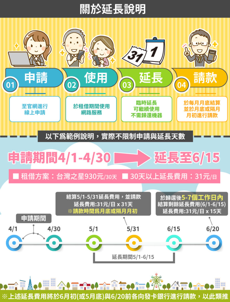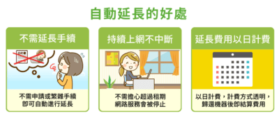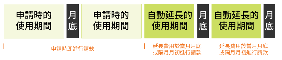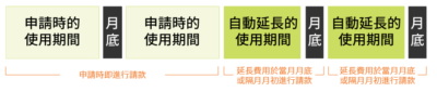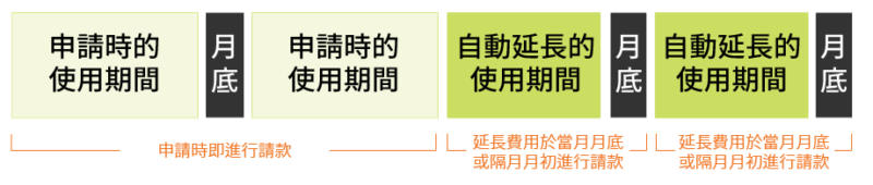 自動延長的延長費用,將會於當月月底或隔月月初進行請款。