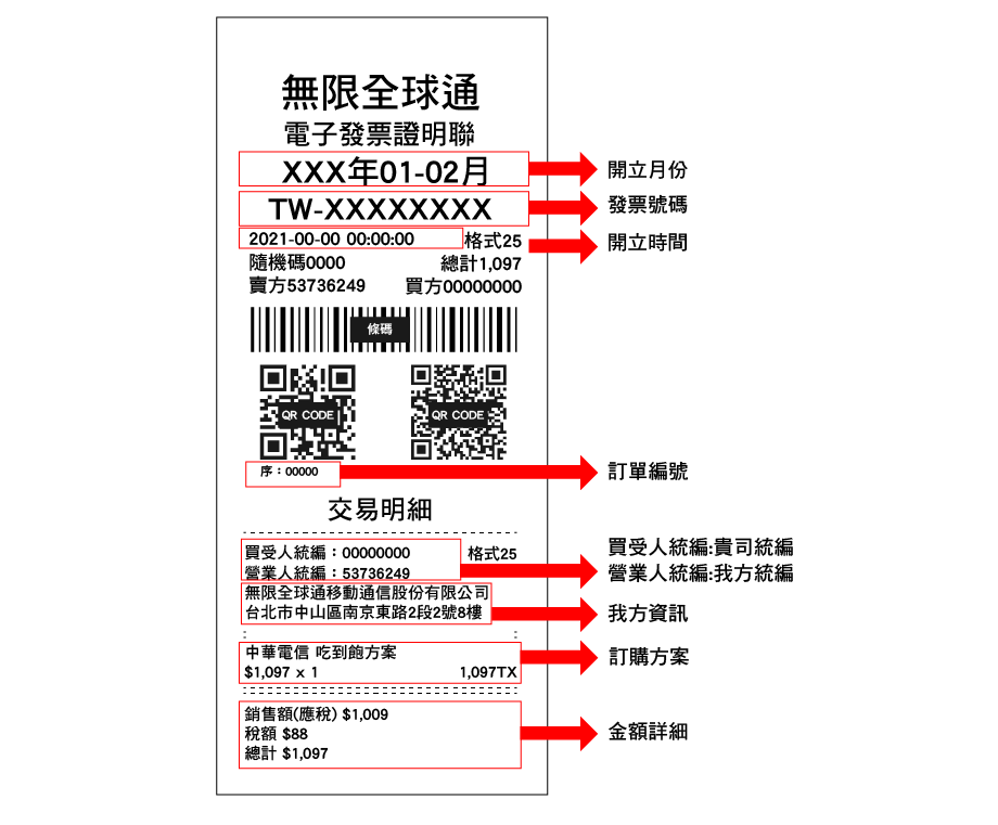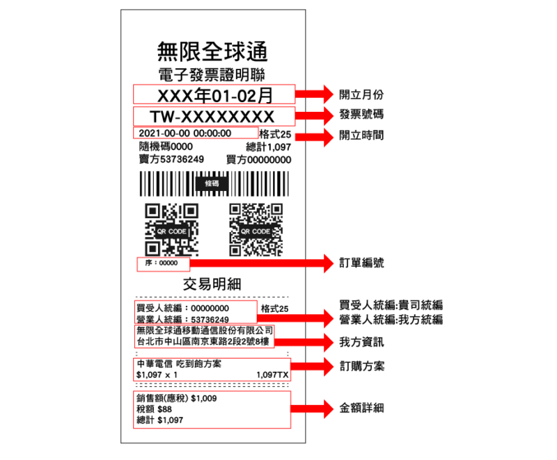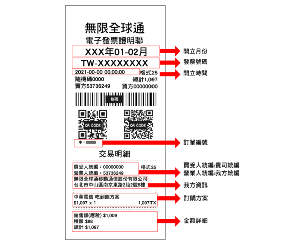 若選擇公司報帳用發票,發票會隨機器一起寄出,詳細項目可由以下進行確認。